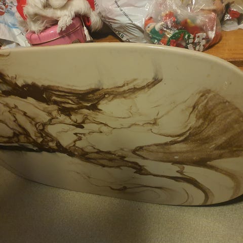 Bordet har en organiskt formad skiva i svart laminat med elegant marmorerat/smoky mönster samt ett skulpturalt svartmålat underrede med mjuka, sammanhängande former. En tidstypisk och exklusiv design som passar perfekt i både moderna och retroinspirerade hem.