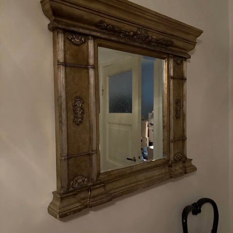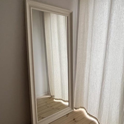 Upphängningen är just nu fäst så att spegeln ska hänga vågrätt, på bredden.