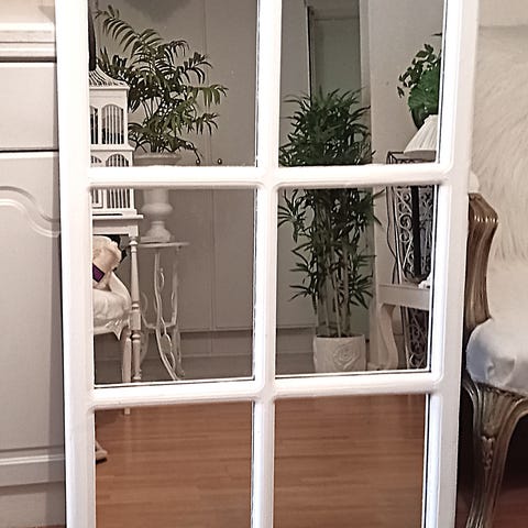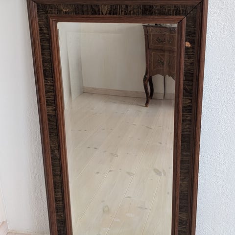 Antik spegel med blyinfattat glas och stålram