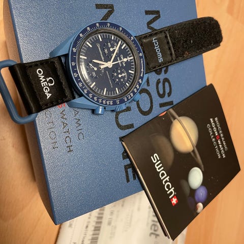 Säljer en Omega Moonswatch Pluto som köptes på Swatch i Italien, april 2023. Nyskick och komplett med orginalförpackning, papper och kvitto