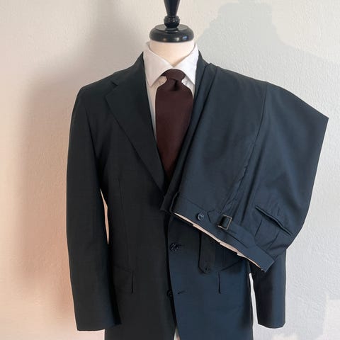 Letar du efter den ultimata uddakavajen? Då har du kommit rätt. Här finner du en mörkbrun kavaj från svenska lyxvarumärket Rose & Born. Kavajen är klassisk skuren med väl tillägna slag. Tack vare texturen i tyget så är den väldigt enkel att matcha till det mesta. Den är gjord i italien i 100% ull och nypriset ligger över 10 000kr. Kavajen är måttsydd, skulle säga att storleken motsvarar 52. Se mått nedan