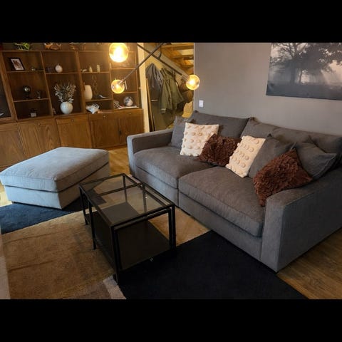 3-sits soffa från Mio modell Rossi med tillhörande fotpall. Sparsamt använd under ca ett år. Färg Alex grey. Finns att hämta i Stenkullen