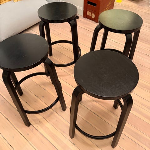 Den moderna och stilrena barstolen K65 är formgiven av Alvar Aalto år 1935 för den finländska möbeltillverkaren Artek. Benen är något rundade och stolen har ett lägre ryggstöd för att öka komforten. Stolen passar utmärkt att ha i ett mindre kök vid ett högt bord eller i vardagsrummet vid baren så du kan erbjuda dina gäster snygg sittplats.