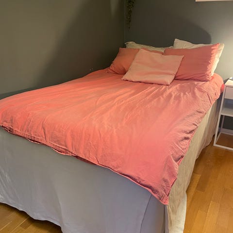 Ingår grå sängkappa, madrasskydd samt två stycken dra-på-lakan.