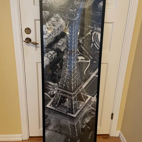 Tavla med motiv av Eiffeltornet och Paris. Storlek 140x100 cm. Grå/silver träram. Passar för väggdekoration i hem eller kontor!