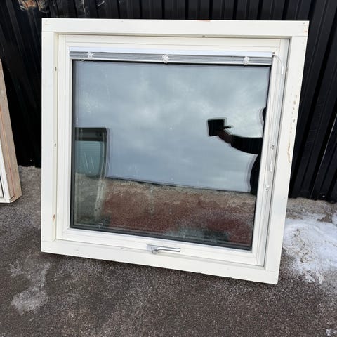 Enkelfönster i trä, utåtgående och hägerhängt.