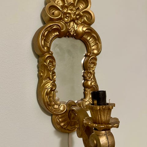 2st vackra äldre vägglampetter i mässing - rokoko + tavla
