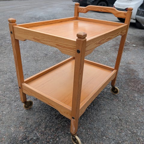 Fin gammal serveringsvagn på hjul, kan även användas som sidobord. Fint skick trots ålder, hämtas i Bandhagen.