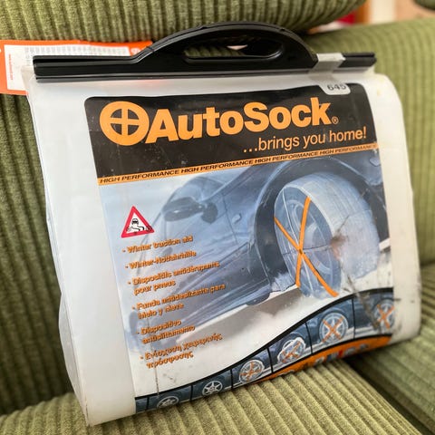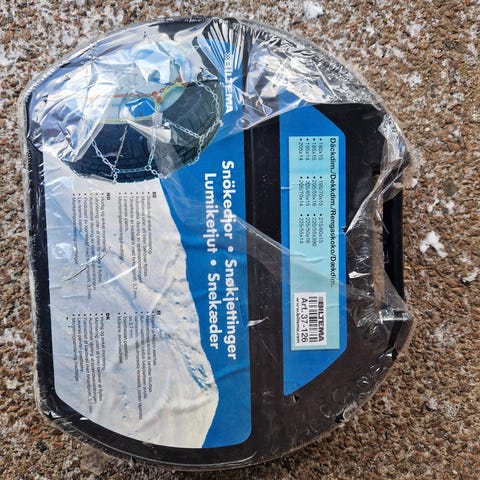 Snöstrumpor till bilen. Ifall du kör fast eller de är extremt halkigt. Smidigare än snökedjor.