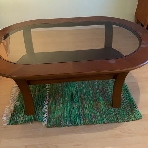 Bordet är använt med lite synliga repor på bordsskivan, men inget som påverkar helheten. Ena skarven har gått sönder för benen och är ihopsvetsat. Syns ej om man ej kollar riktigt noga.