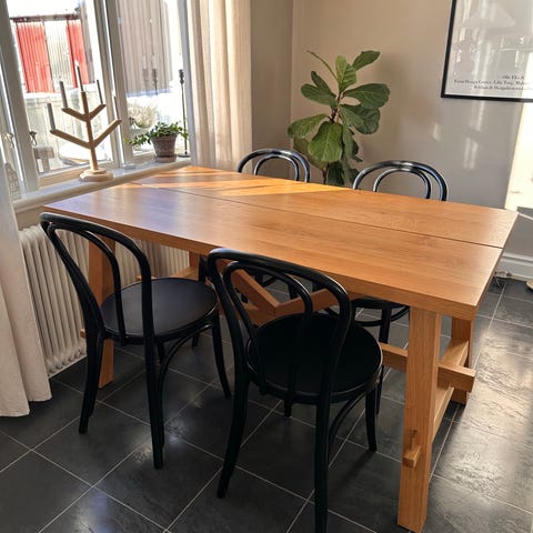Stadigt matbord i massivt trä och metall ben.