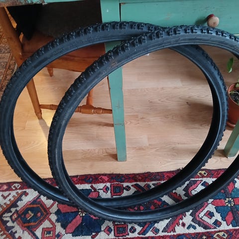 Två dubbdäck Suomi Tyres W106. Använda en vinter. Bra skick på dubbarna.