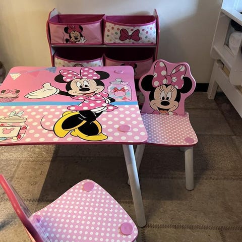 Barn bord med 2 stolar, köpt från jollyroom för 800 kr. Säljs för 450 kr. Snabb hämtning prioriteras i Västerhaninge.