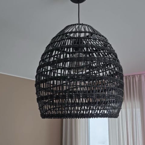 Säljer fin svart taklampa. Lampan hängs upp med krok.