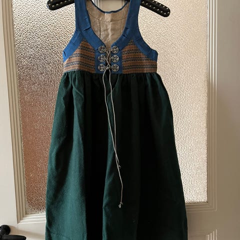 Fin Dirndl-klänning i barnstorlek, ca 4-7 år, längd från axeln 75 cm, runt midjan ca 62 cm