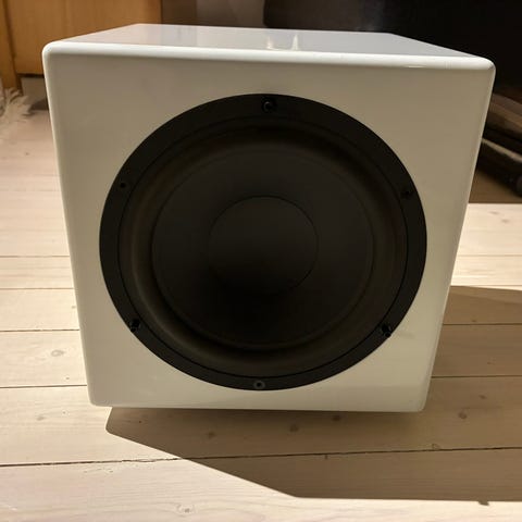 Detta är en Argon SUB-840 subwoofer i vit färg.