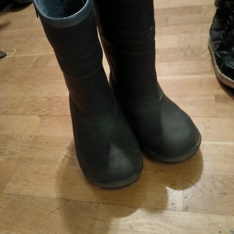 Foder är bortsliten bakom hälen, annars hela, passar som extra par