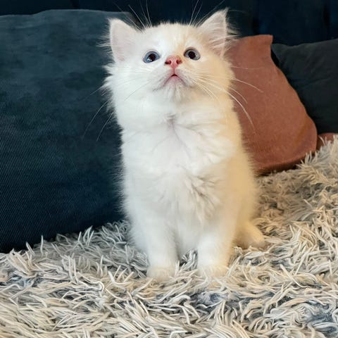 Mamman är 75% ragdoll och 25% norsk skogskatt och pappan är 100% ragdoll.