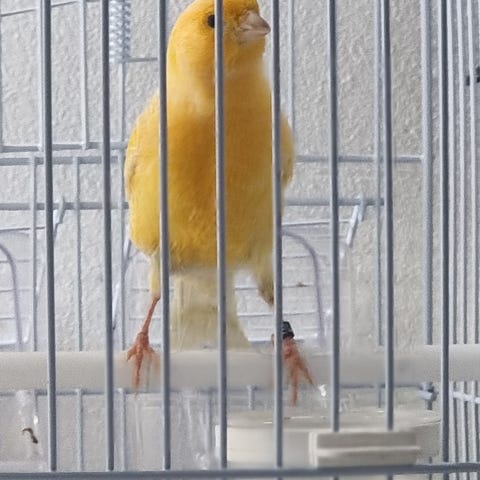 Fin och Frisk. Är inte Tam än. Fick hen som present av en vän men ville inte ha hen. Vet inte kön för fågeln. Ser ut som en tjej. Finns i Malmö