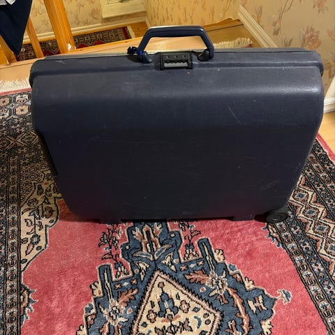 Samsonite svart resväska tillverkad i plastmaterial, designad för unisex-användning. Resväskan har ett hårt skal och inre fack för organisering av innehåll.