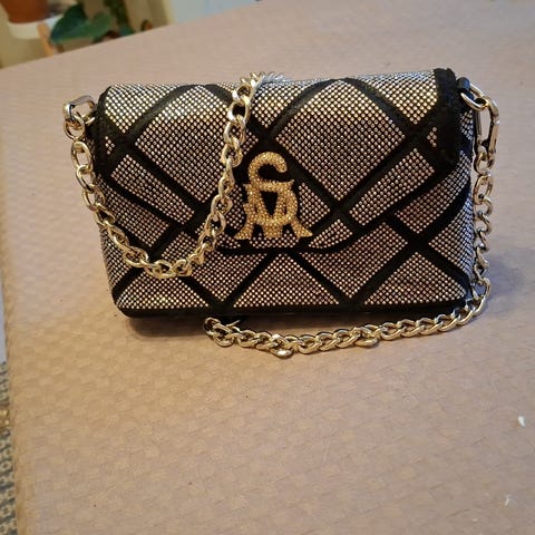 Den har även ett extra fack innuti där du kan lägga tunna saker i som kort eller pengar, dekorativ detalj med kristalliknande stenar på framsidan. Den har ett fack och är lämplig för mindre tillbehör och tillfällen där en kompakt väska önskas.