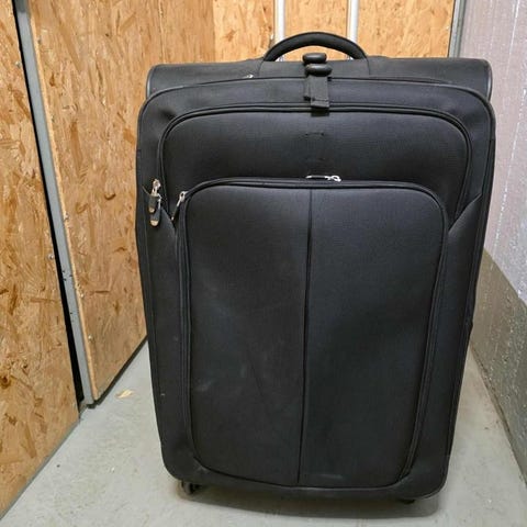 Stor resväska med mycket plats och man kan dra den på hjulen.