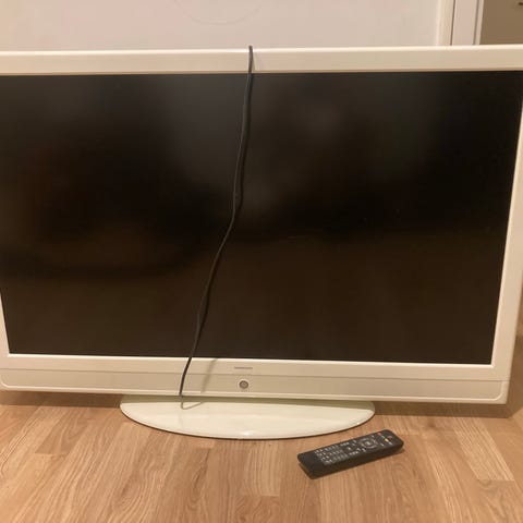 TV med väggfäste. Funkar som den ska. Fjärrkontroll och strömsladd medföljer.
