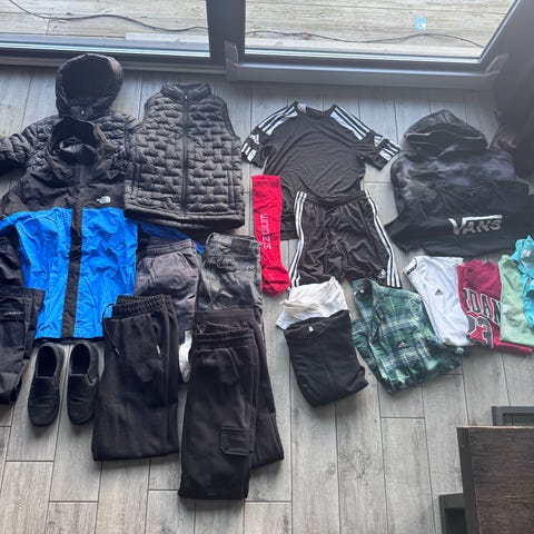 -Svart/Grå camo med vita ränder på ärmarna i storlek 150-152 12-13år 200kr
