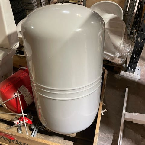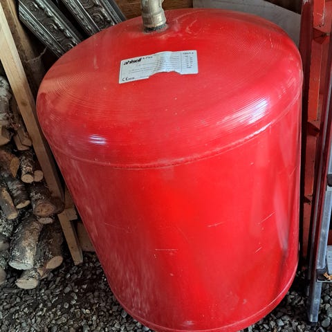 Zilmet 130 CAL-PRO expansionskärl i röd färg samt ett ytligare expansionskärl på 80L/0,5bar av märket Flamco. Används för att hantera tryckförändringar i värmesystem och förhindra skador genom att absorbera expansionsvätska. Utrustad med anslutningar och tryckmätare för övervakning av systemets status.