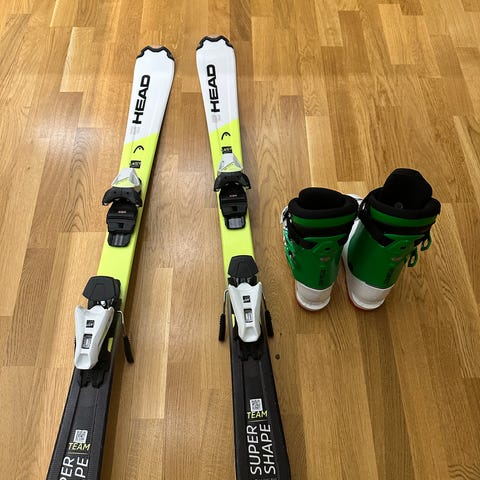 Skidor barn Head Super Shape 117 cm, pjäxor Head Z3 & stavar