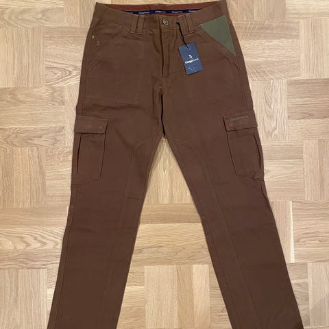 Chevalier byxa i storlek 38W med färgerna brun och svart. Byxan har detaljer i olika material och justerbar rem vid benslut.