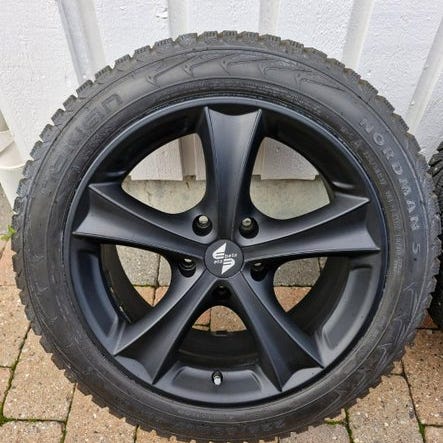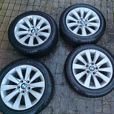 Original bmw fälgar, tyvärr fattas ett av emblemen. Däcken är MS håller iaf en säsong till. 225/50R17.