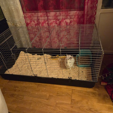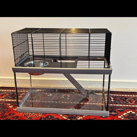Buren går att fälla ihop och tar lite plats vid förvaring. Den har även en avtagbar plastbrunn som går att rengöra vid behov. Buren har två dörrar, en på kortsidan och en på långsidan. Med praktiska spärrar har du alltid åtkomst till din hund/katt/kanin. Storlek: längd 78 cm , bredd 49 cm, höjd 57. cm..