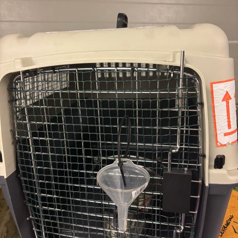 Transportbur godkänd för flyg (även godkänd för UK). Använd en retur resa hund.