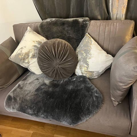 Säljer min exklusiva Latino soffgrupp (3+2+1) i mörkgrå sammet med guldfärgade ben.