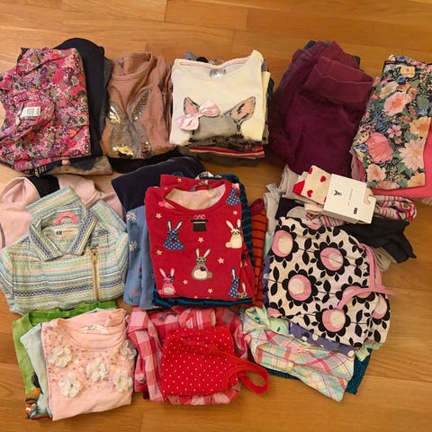 Klädpaket med kläder från olika märken, bl.a. Polarn o Pyret, Newbie, Next, H&M och andra.