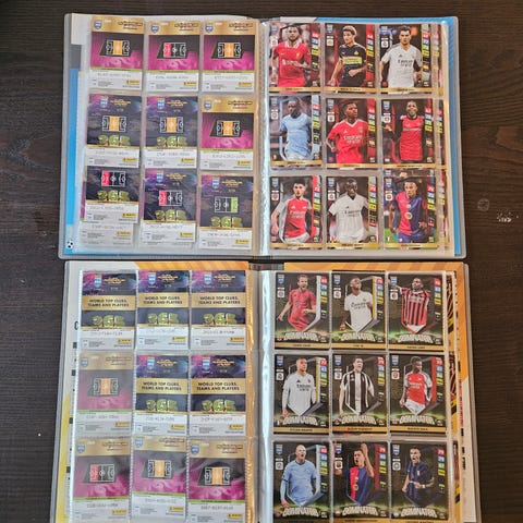 2 fotbollspärmar som nästan är fulla med kort. De flesta korten är i bra skick. En pärm kostar 600kr båda pärmarna 1200kr.