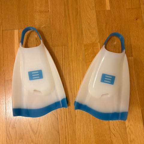 Speedo simhjälpmedel i blått, består av en kickboard och en pull buoy. Används för simträning och teknikförbättring.
