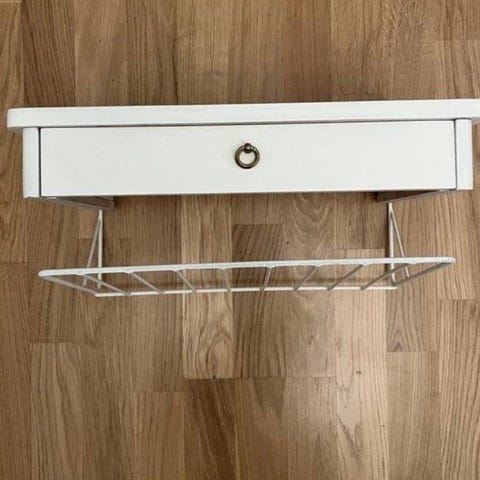 Vacker liten vägghängd hylla i teak och metall. Perfekt i hallen eller som sängbord.