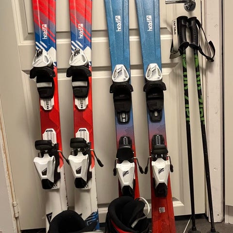 Längdskidor 100cm för barn. Med tillhörande enkla längdststavar. 100kr