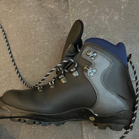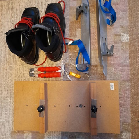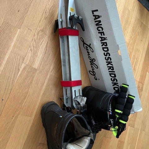 Klassiska Långfärdsskridskor från Haglöfs och tillhörande Lundhags pjäxor i storlek 38-39 i mycket fint skick!