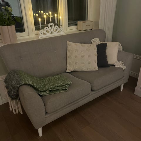 stora soffan: H 80 cm respektive 40 cm med sittkudden/dynan, D 60 cam och L 180 cm