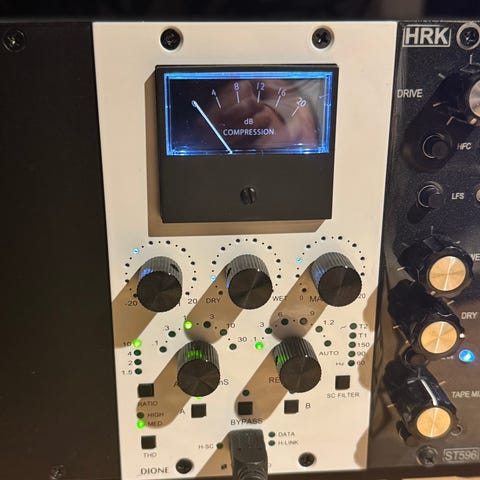 Stereo tone shaping fet kompressor från Drawmer, sparsamt använd då proddar intresset svalnat, har stått i rökfri studio