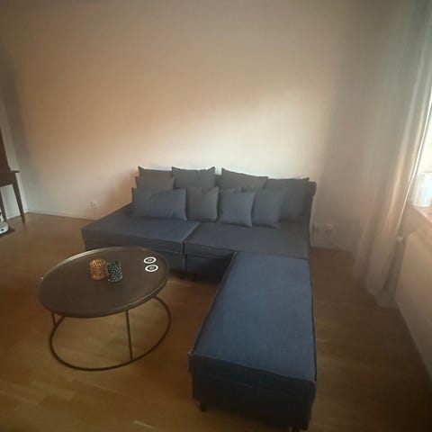 Soffan är i fint skick, med inga fläckar, inga hål och inga skador. Kommer från ett rök- och djurfritt hem.