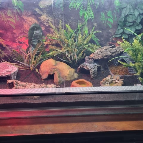 Grotta till reptil denna gjordes i ordning men vår ödla var för stor. Passar mindre ödla/ unge. Vi hade en rejält stor leopardgecko.