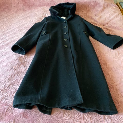 Lila Paula Klein (Paris) Kappa i ull och kashmir med pälskrage. stl M. Kappan är i fint skick.