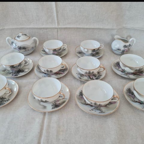 Komplett teservis från C.B.C. China med ett vackert mönster. Handmålad Japan.