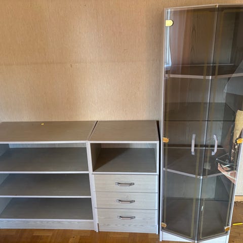 Vitrinskåp från IKEA med tre hyllor, i härdat glas.