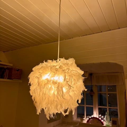 Fjäderlampa där fjädrarna sprudlar lite mer än den andra modellen jag har till salu.