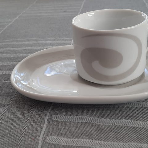 Säljer 12st vita kaffekoppar med fat som kan användas både med och utan.